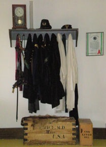 The Shops Building recalls the multitude of tasks  undertaken at the Fort – bread baking in the brick oven, blacksmithing, carpentry, tinsmithing, saddlery. We’ll have toFLHS - Uniforms return to further explore the New and Old Commissaries, Blockhouse, Quartermaster Storehouse, two Company Officer’s Quarters, and Commanding Officer’s Quarters. We only scratched the surface of Fort Larned. And, we did not scratch our names in stone.