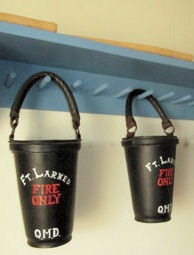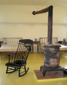 FLNHS - Fire Buckets We noted walls that talk with century-old graffiti – names and dates etched in the soft stone building blocks. Stepping into the Company C Third U.S. Infantry Barracks we’re surprise at the detail of the furnishings – fire buckets to coffee grinders, uniforms and firearms. Imagine the level of activity when this building housed and fed 150 men. The east half of the barracks replicates the post hospital, again in fascinating detail – more than we can observe during one visit.