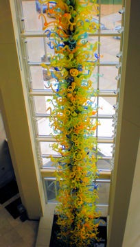 Whether trying to take in the entire tower or studying the multitude of individual pieces twisting and turning in one small segment we’re struck by the artistry and complexity of the structure. As Chihuly admirers we’ve seen many installations of his works in various settings around the country, this is truly an outstanding (and upstanding) original.