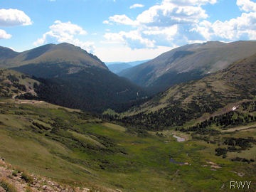 s the title of Highest Paved Road in America. Watch for Big Horn Sheep on the rocky slopes and plan a stop at the Mount Goliath Natural Area. Twisted and ancient bristlecone pines, some more than 1,600 years old) grow in this transition zone between sub-alpine forest and tundra. An access fee applies; exempt for Federal Recreation Passport holders.