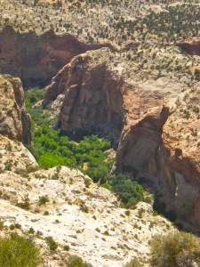 Our destination for the day was Page, Arizona and Lake Powell. Since we arrived boatless we choose the Canyon Adventure boat tour for a nearly three-hour lake experience. The waters of Lake Powell flow into dozen of desert canyons. On this tour we went up Navajo Canyon and the narrower Antelope Canyon to a spot where we could almost reach out and touch the walls. A watery day in the desert.