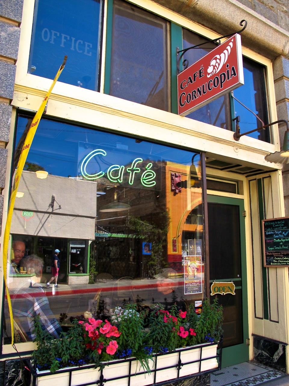 Bob spotted a likely looking lunch spot, Cafe Cornucopia. What a great find. The tiny eatery seats 24 for lunch or a sweet treat.Their homemade bread and an array of homemade desserts shouldn’t be missed. I loved the Pina Colada Cake.