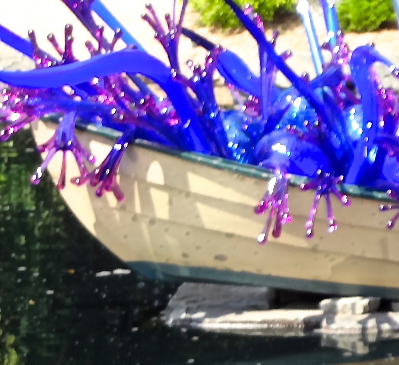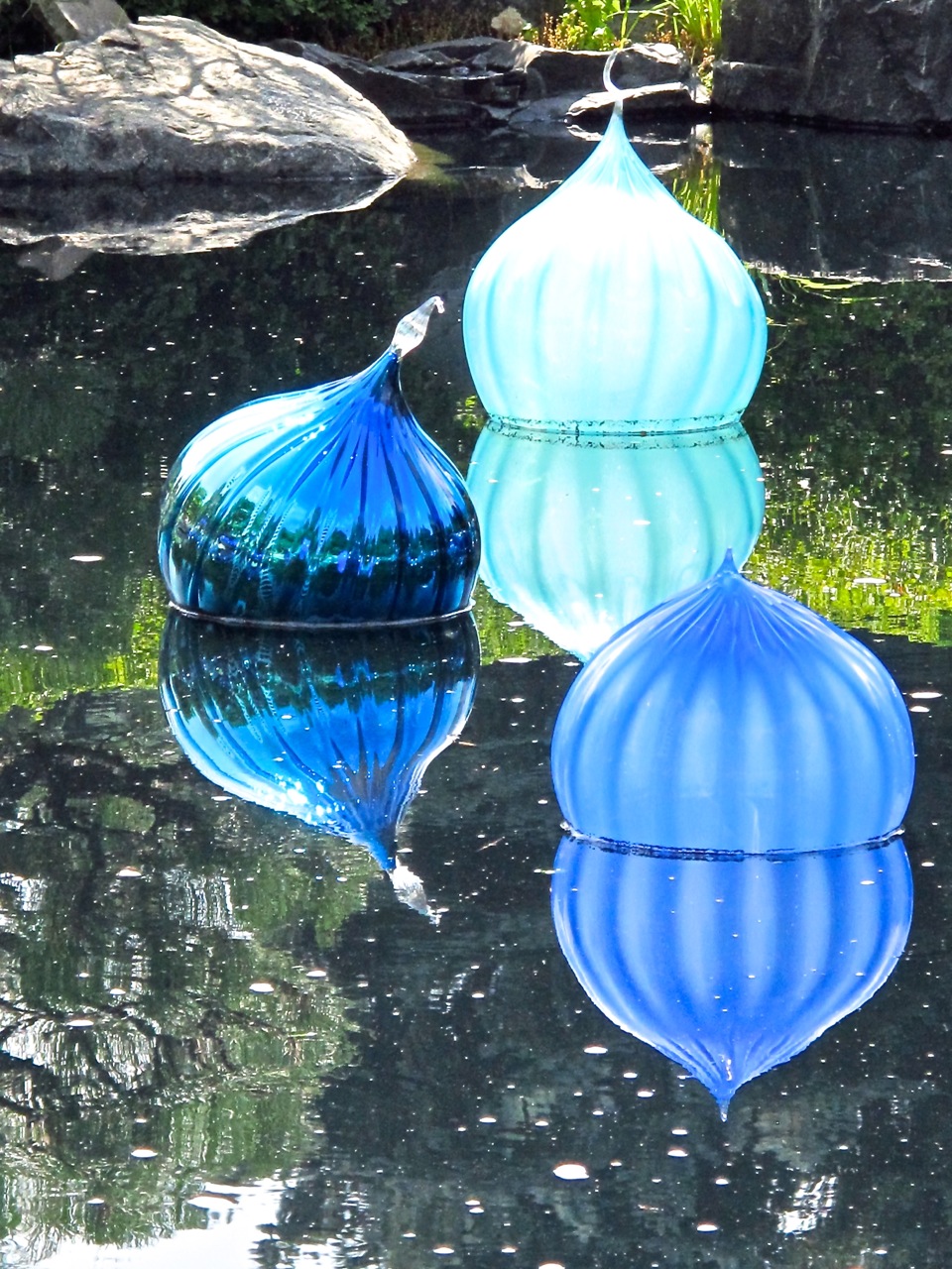 Bob labeled the blue pieces floating nearby Hershey Kisses; Chihuly calls them Walla Wallas after the famous Washington onions. It’s all in one’s perception.