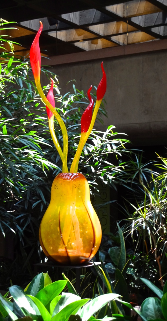 We were so taken with the gardens we almost forgot to visit Boettcher Memorial Center and Tropical Conservatory. Of course there’s Chihuly works incorporated among the plantings plus a small viewing area for a video – worth seeing but unfortunately the facility chosen is only one-tenth the size needed.