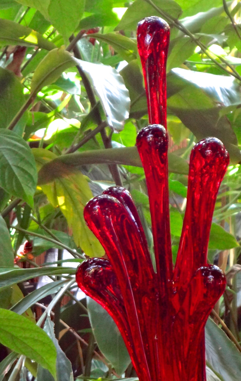 Frog Feet 2I loved listening to children’s reactions and views of the glass and gardens. At a viewpoint for the Blue and Purple Boat a five-year-old thought the purple pieces looked like frog feet reaching for the water. I’ve seen those same pieces several times, frog feet never entered my mind but upon consideration I thought, he’s right.