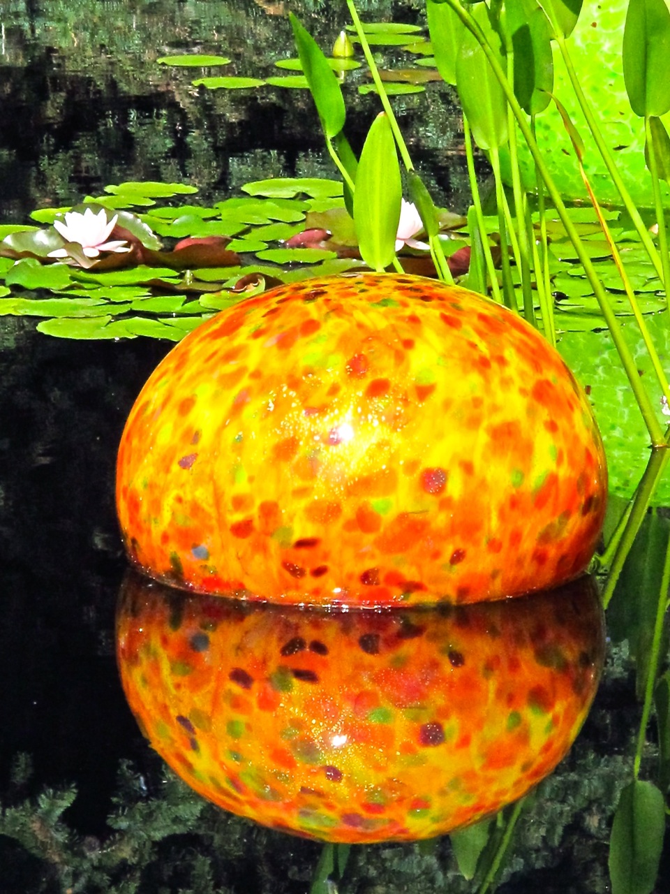 I also recommend taking time to observe individual components of the installations. It’s easy to admire the overall visual effect but looking at a single element or small groupings proves worthwhile. Does that single blue piece in the Monet Pool remind you of a waterfowl bending to feed?