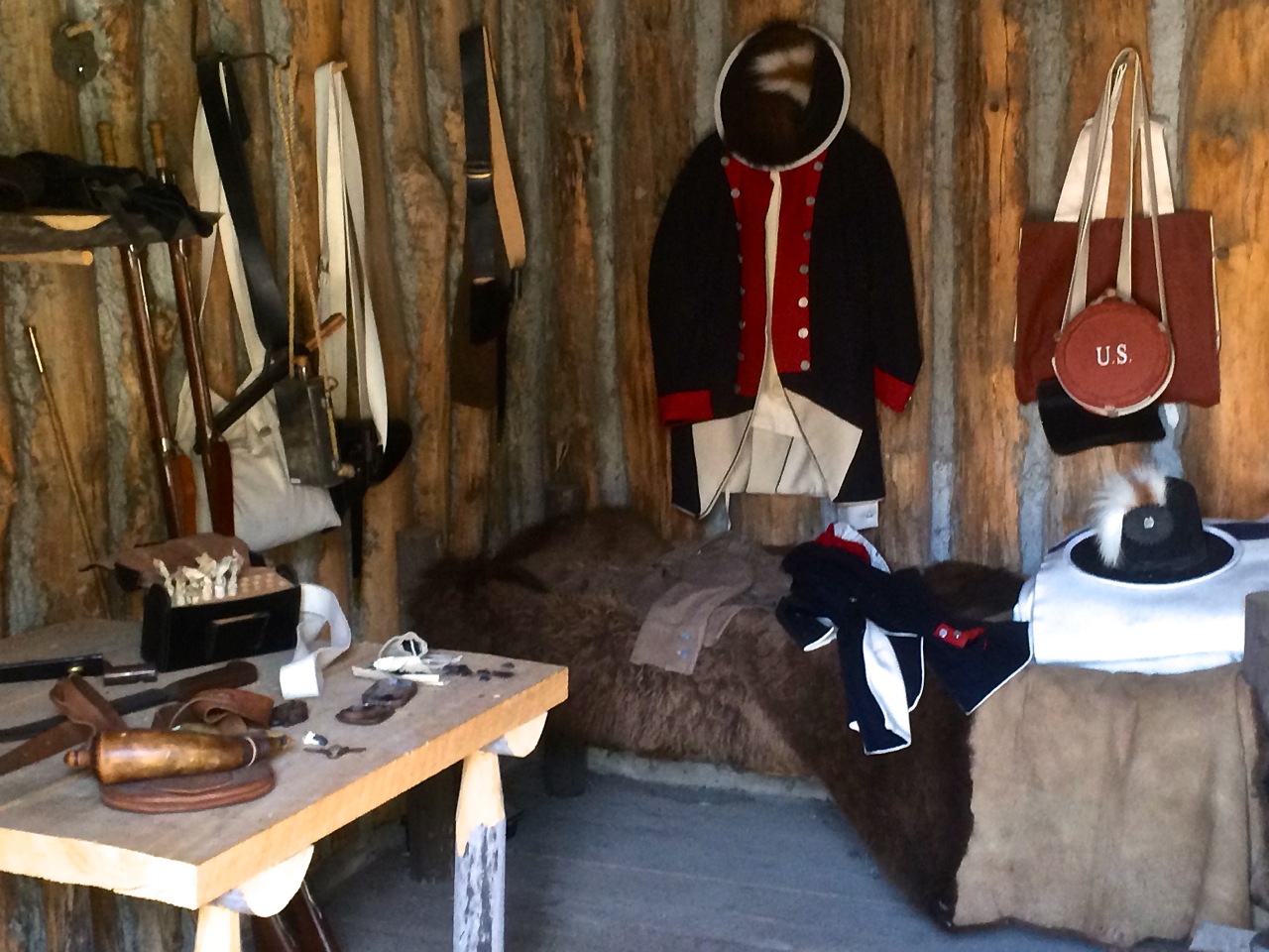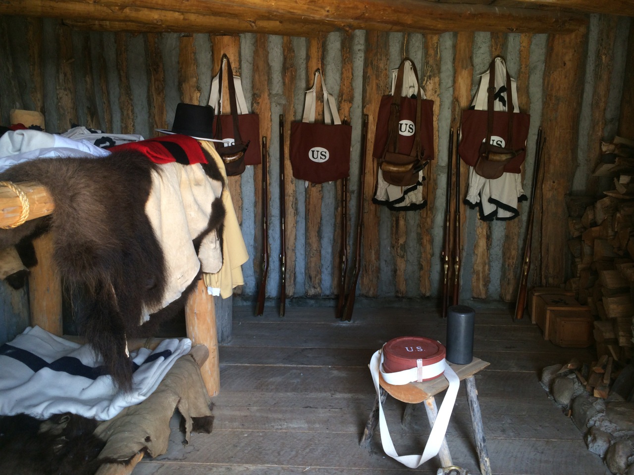 Interpreters give guided tours; during our visit our guide was very knowledgable, bringing time at the fort come to life with fascinating details. He noted that several of the doors are hung incorrectly – they swing outward which would have made it impossible to open after the heavy snowfalls. As today’s temperature hovered near 100 degrees it stretched our imagination to feel the -45 degrees the Corps suffered. Many of the men experienced frostbite but all survived.