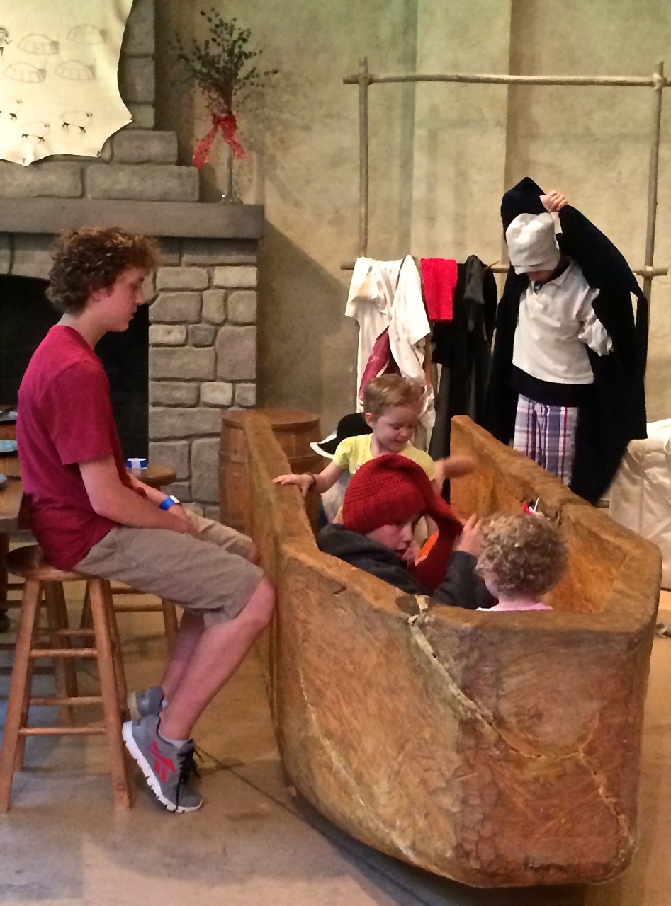 A large hands-on activity area in the visitor center attracts youngsters to try on outfits, don hats and climb into a replica dugout canoe.