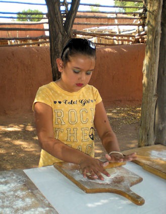 A large volunteer staff dresses in clothing appropriate to the period. They share culture and heritage through stories, role playing, demonstrations and hands-on activities. Visitors can make tortillas, grind corn, make a corn husk doll or other arts and crafts, and sample bread baked in the traditional hornos.