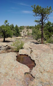 Cherry Creek flows through Castlewood Canyon. In the late 1800s a 600-foot-long dam was complete to store water vital to ranchers and farmers. Almost from the beginning the dam leaked causing concern downstream in Denver. Engineers debated safety issues until the the early morning hours of August 3, 1933 when the dam gave way releasing 1.7 billion gallons of water. The raging torrent scoured canyon walls as it surged towards Denver. A slide show in the visitor center relates the story of Castlewood Dam and the second worse flood in Denver history.